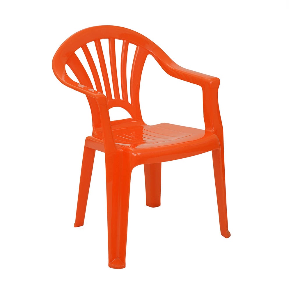 A classic design plastic chair molded for kids for regular wear and tear usage at home and garden. This is safe for kids and durable.