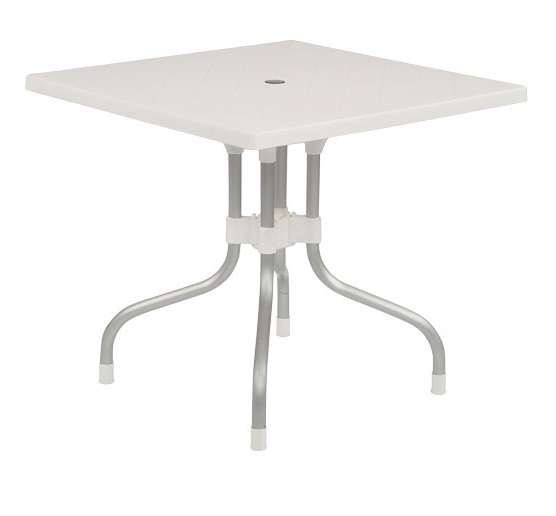 UNIQUE FOLDING TABLE WITH TOP MADE OF SYNTHETIC RESIN AND FOLDING BASE MADE OF ALUMINIUM. OPTION AVAILABLE IN ANODIZED AS WELL AS POWDER COATED FINISH. EASY TO ASSEMBLE AND FOLD