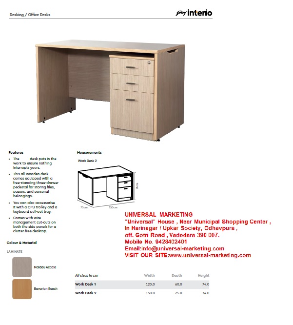 Wood DeskThe  Desk is designed with Prelaminated Boards is durable and lightweight, enabling flexibility in setting up a dynamic workspace
