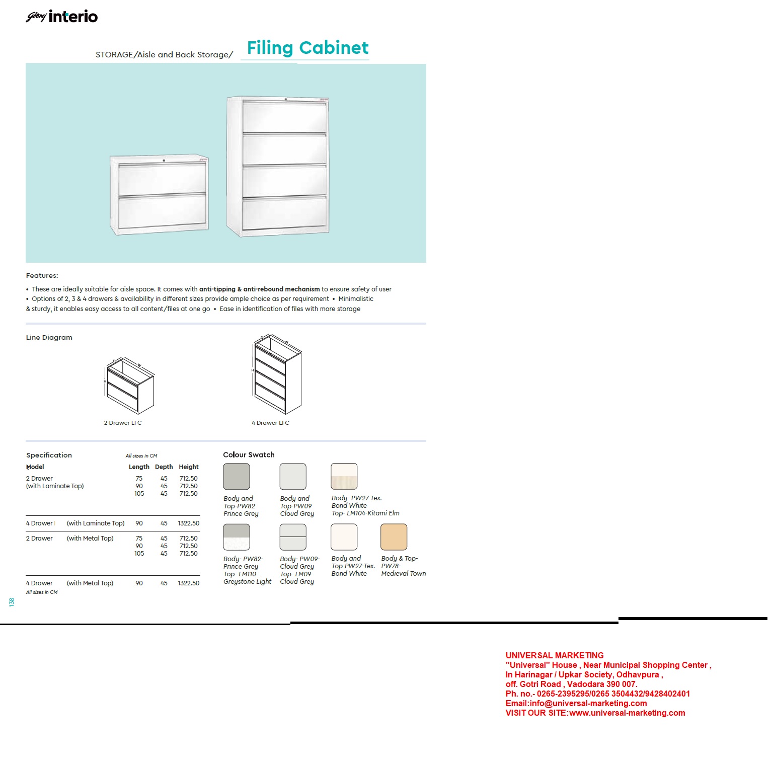 Prince grey 2 Drawer 3.0 Ft (With Wooden top)737.5H x 900W x 450Dmm Bond white2 Drawer LFC 3.0 Ft (With Metal top)(713.5H x 900W x 450D)mm Bond white 4 Drawer LFC 3.0 Ft (With Metal top)(1323.5H x 900W x 450D)mm Prince Grey 4 Drawer LFC 3.0 Ft (With Metal top)(1323.5H x 900W x 450D)mm