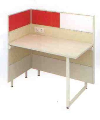 worktop.partition thickness as 52.4 mm thk and ht.including powder coated aluminium trims..Worksurface - out of 25 mm thk prelam particle.board with flat pvc lipping edge banding of size.1200 mm w x 600 mm d. SPINE THICKNESS is of 53mm which has raceway for switches. The workstation wouls be supported with MS powder coated legs. The top screen is fabric tackable and white board. Intermediate blocks are given in fabric + Fabric finsh. Bottom screen metal finish