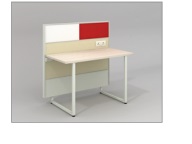 worktop.partition thickness as 52.4 mm thk and ht.including powder coated aluminium trims..Worksurface - out of 25 mm thk prelam particle.board with flat pvc lipping edge banding of size.1200 mm w x 600 mm d. SPINE THICKNESS is of 53mm which has raceway for switches. The workstation wouls be supported with MS powder coated legs. The top screen is fabric tackable and white board. Intermediate blocks are given in fabric + Fabric finsh. Bottom screen metal finish