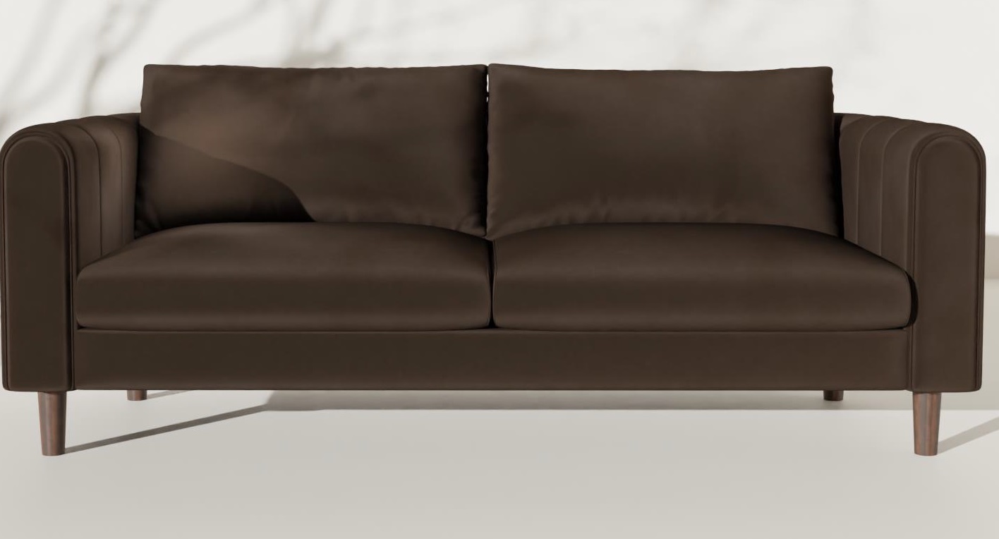 Cocoa brown velvet .Comfortable mid back support.Liise Back cushions.Firm Lumber support.Waterfall edge ,elevated , cushions .cylindrical legs with solidwood finish .sofa in velvet upholstery in brown shade with a quilted design at side arms which adds to the elegance of the sofa. Sleeky minimalist sofa with rounded armrest with no sharp corners adds to grandeur and style. Available in 1 seater, 2 seater and 3 seater, this mid back sofa with firm lumber support detail is conducive to comfort and coziness. The loose cushions at backrest can be placed at the side which transforms the sofa to day bed adds to the functionality. Also, to add to delight,