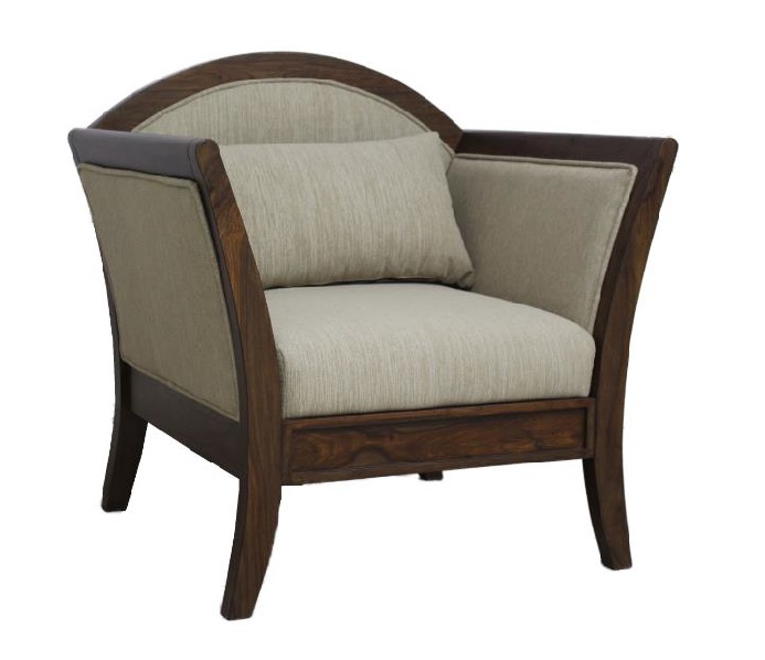 The sofa gives an earthly feel in neutral shade which fits a any decor.Curved wooden angular armrests provides a distinct look .Recron filled cushions.