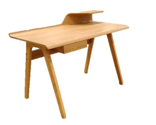 and contours. Table surface top defies the name of the study  desk This bent plywood desk has solid rubber wood legs that make it sturdy. It is veneer finished in Natural Ash shade. This desk has a drawer for storing papers, stationery and other stuff. 3 open compartments are provided for organizing the storage options. Provision for Wire management is made. The stiffener connecting the 2 back legs provided stability to the desk and acts as a base for foot rest.