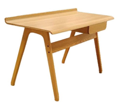 and contours. Table surface top defies the name of the study  desk This bent plywood desk has solid rubber wood legs that make it sturdy. It is veneer finished in Natural Ash shade. This desk has a drawer for storing papers, stationery and other stuff. 3 open compartments are provided for organizing the storage options. Provision for Wire management is made. The stiffener connecting the 2 back legs provided stability to the desk and acts as a base for foot rest.