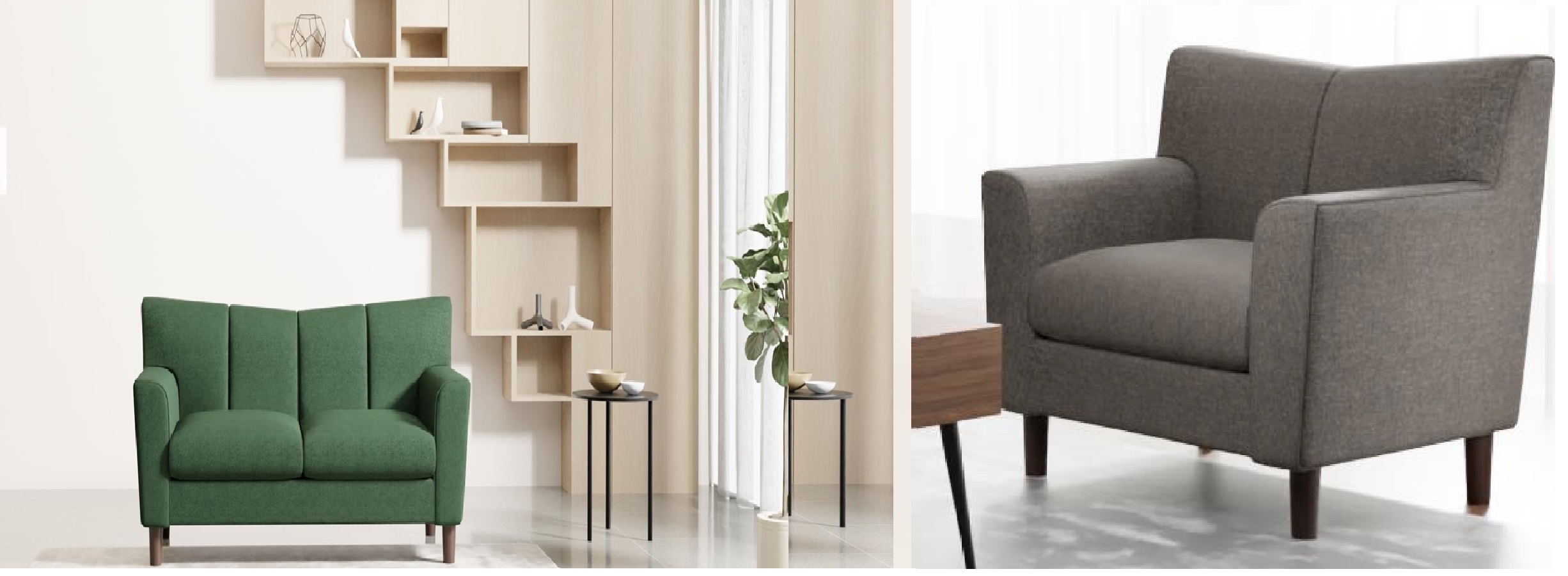 inhouse designed and manufactured sofa - an affordable solution without compromising the design and comfort. Available in 3 modules – 1 seater , 2 seater and 3 seater in two vibrant shades in fabric – Green and Taupe, which fits in any décor with ease.