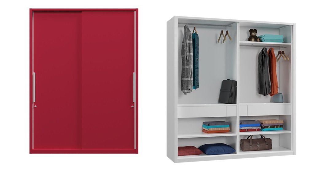 Each door of the two-door wardrobe provides access to a separate storage area with two different locks and keys. Sharing a wardrobe with your roommate will not be a problem