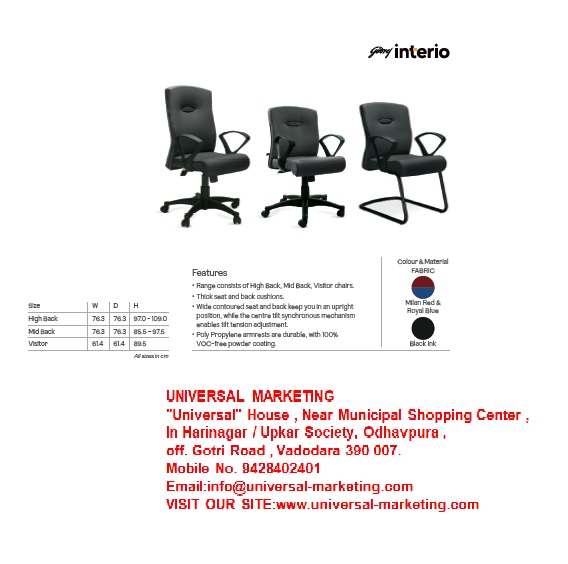 • Range consists of High Back, Mid Back, Visitor chairs.