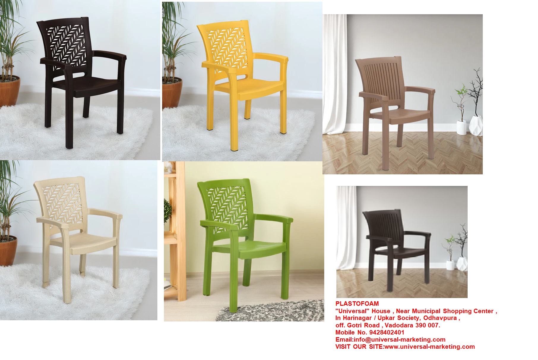 Green MBG Ruset Brown Yellow Premium Plastic Arm Chair (Rattan Dark Beige)