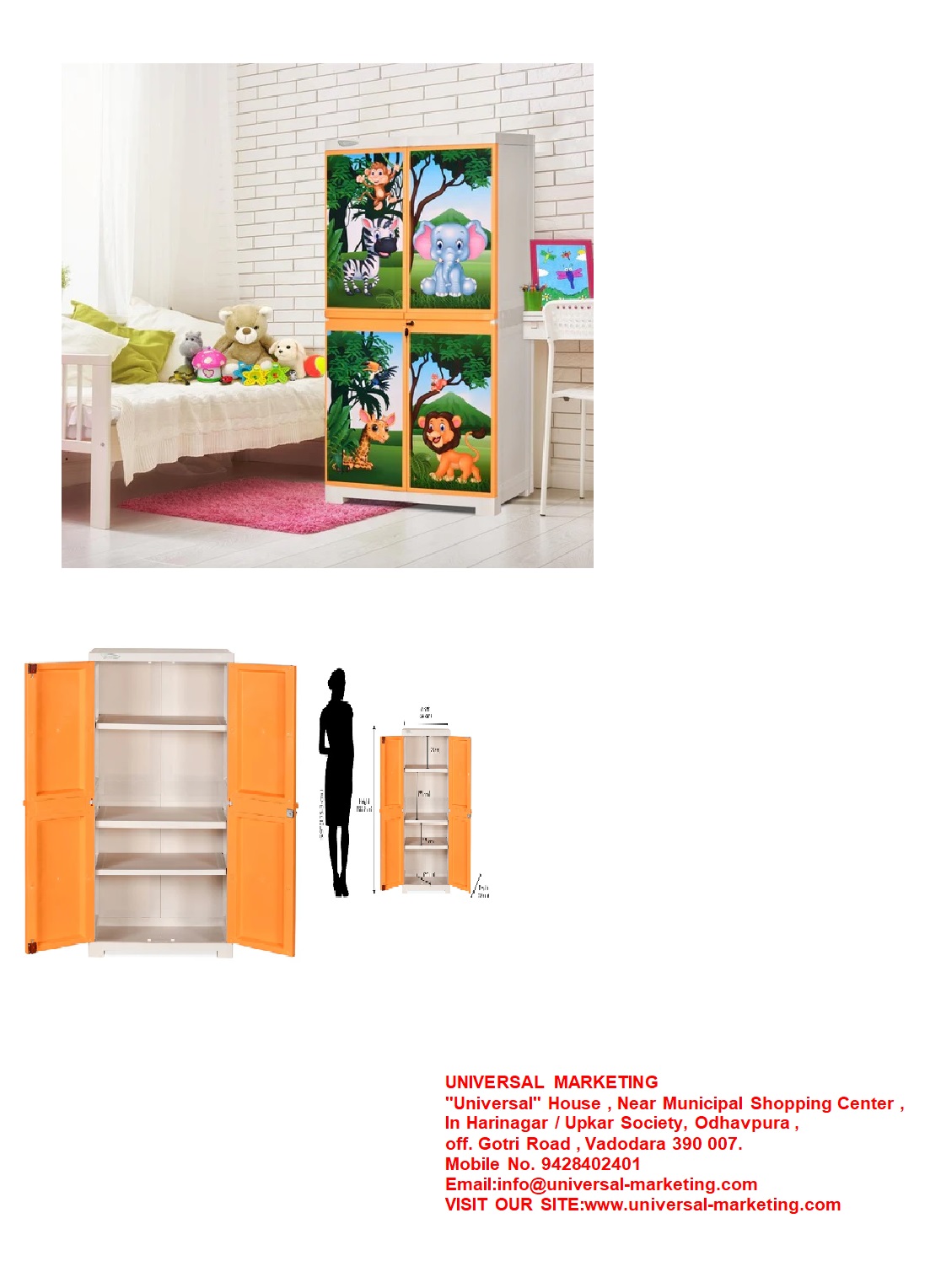 Spacious Freedom Mini Medium Cabinet ,Crafted from high-quality and enduring plastic.Three adjustable shelves for books and clothes.Safety lock and tower bolt provide protection.ontemporary design that is easy to assemble Available in three pleasant colour combinations .Lightweight and multipurpose dual-door cabinet