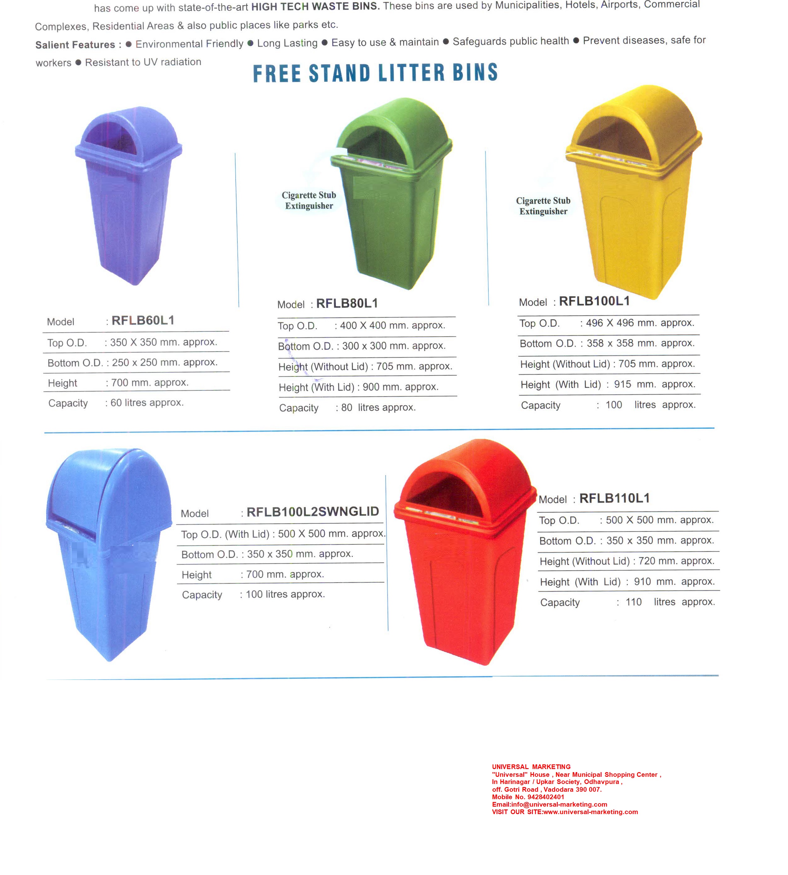 High tech waste bins.These bins are used by Municipalties,Hotels,Airport,Commercial Complex,Residential Areas & also public Place like parts etc