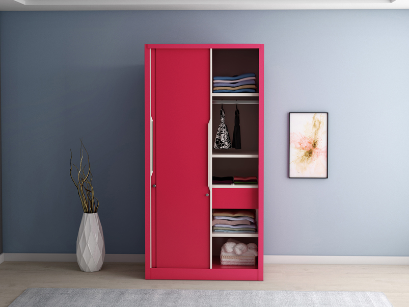 Go contemporary with the Shell Wine Red color of this wardrobe. It will instantly add a modish touch to any space, making your room a more vibrant place.