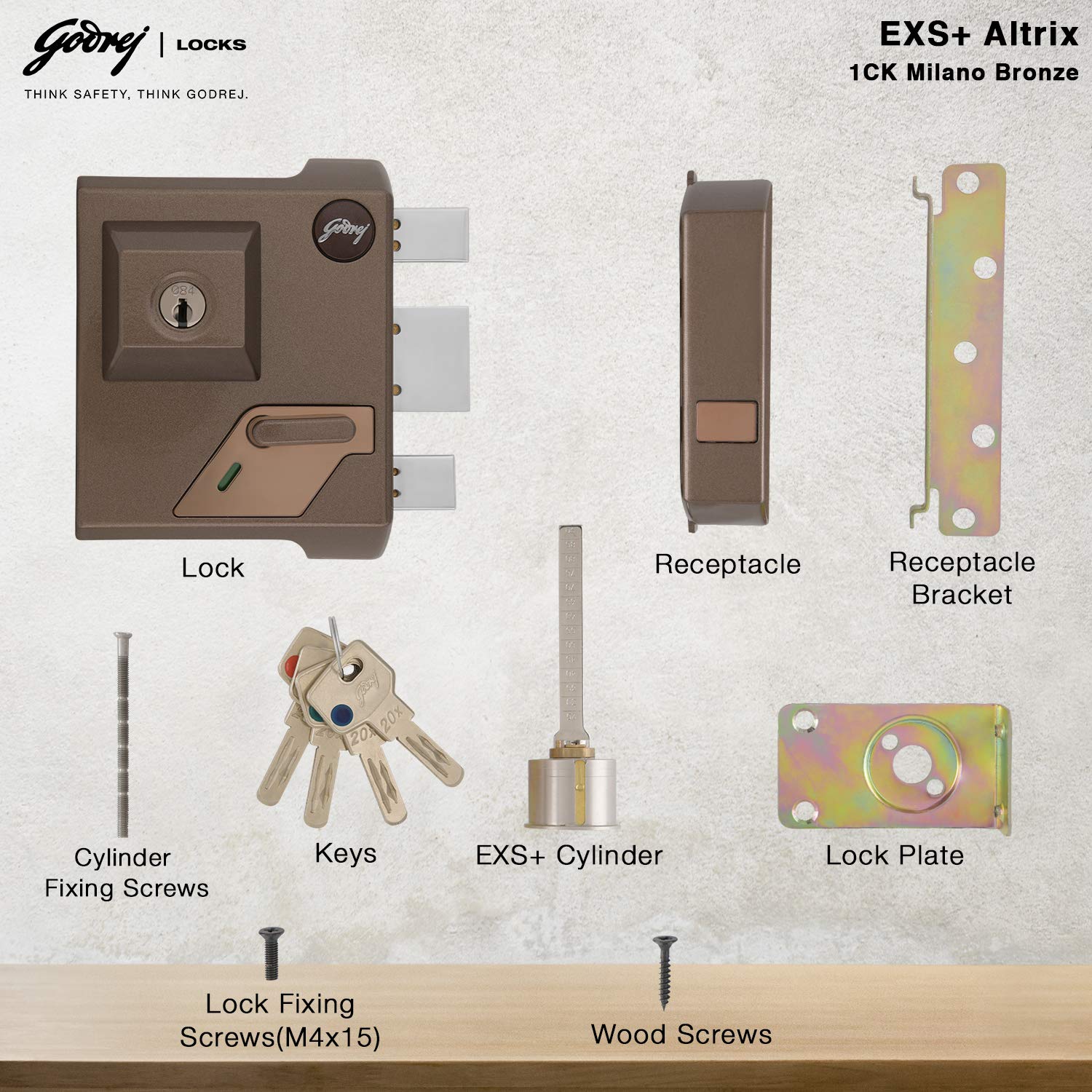EXS+ Technology - This 16 angular pin technology provides 200 cr. key combinations which makes it extremely difficult to duplicate the key