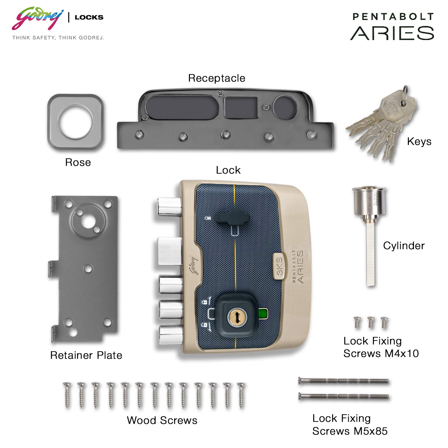 Pentabolt Aries 2C Deadbolt Rim Lock for Home Entrance Door with Inside Opening Mechanism (Vegas Gold)
