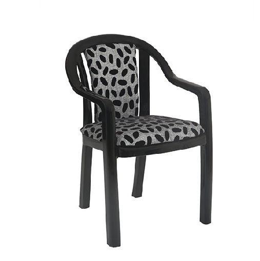 Lacquer finish synthetic resin medium back with arms with seat & back cushion.